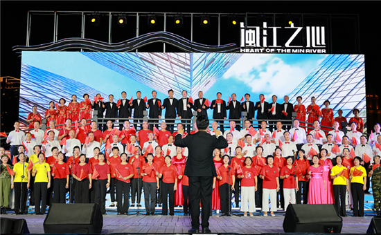 活动当晚,一曲《红旗颂》拉开了音乐会的序幕。随后,福州市激情广场合唱团等19家激情广场大家唱示范平台群众合唱团体轮番登场,接连唱响《保卫黄河》《地道战》《没有共产党就没有新中国》等经典作品,带领观众重回烽火连天的抗战岁月,感受伟大抗战精神。现场还上演了《有福之州》《不忘初心》《水润中华》等歌曲及舞蹈《沂蒙情》,展现福州人民昂扬向上的精神风貌。最后,音乐会在大合唱《歌唱祖国》中迎来高潮。全场观众起立,挥舞红旗放声歌唱,将闽江之心的夜晚染成一片“爱国红”。
